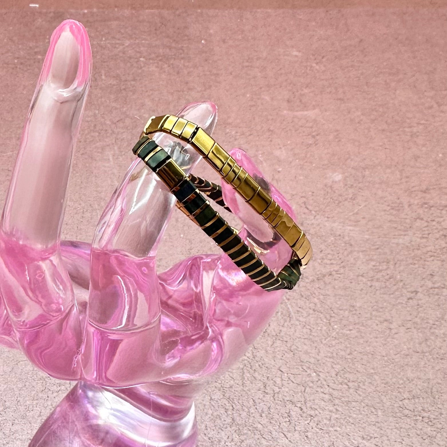 Gold & Rainbow Tile Bracelet Stack