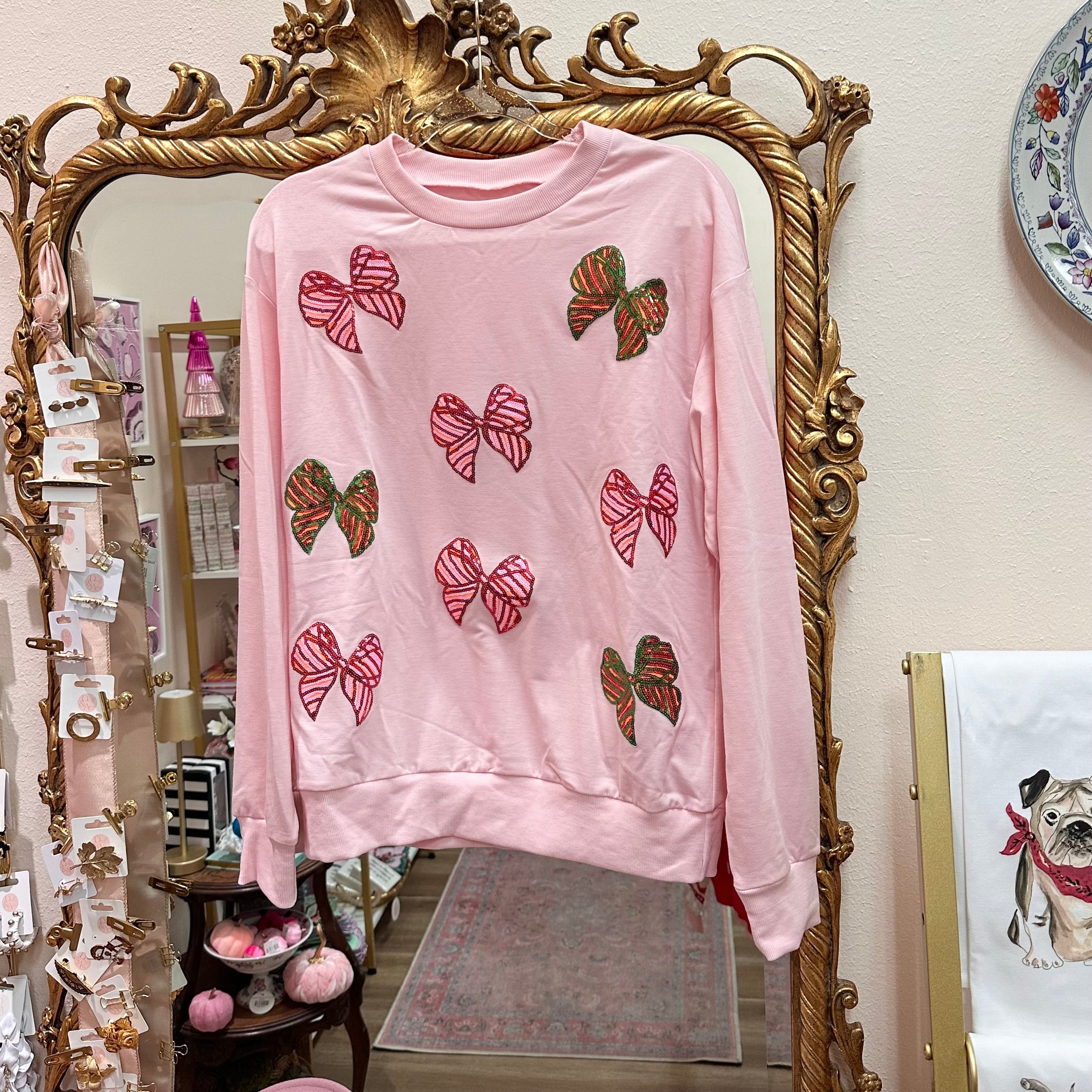 Red & Green Sequin Bow Sweatshirt