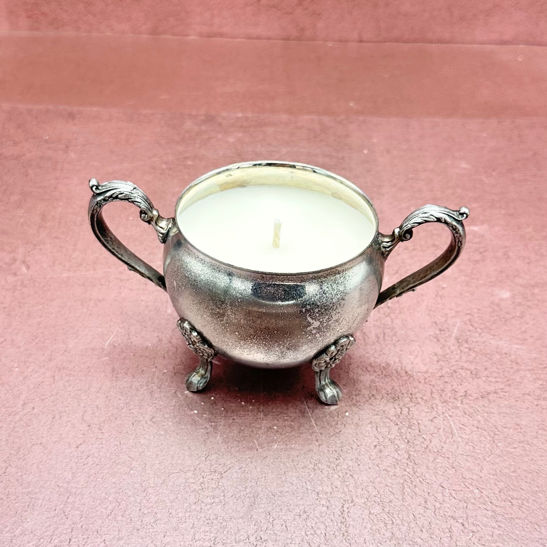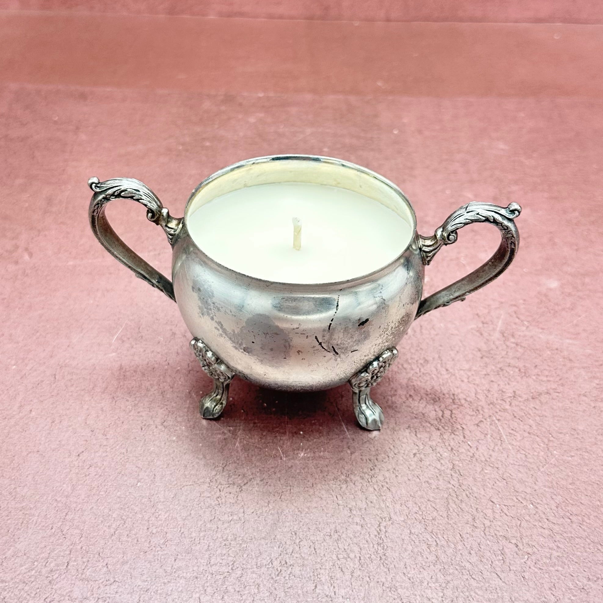 Footed Silver Sugar Bowl Candle