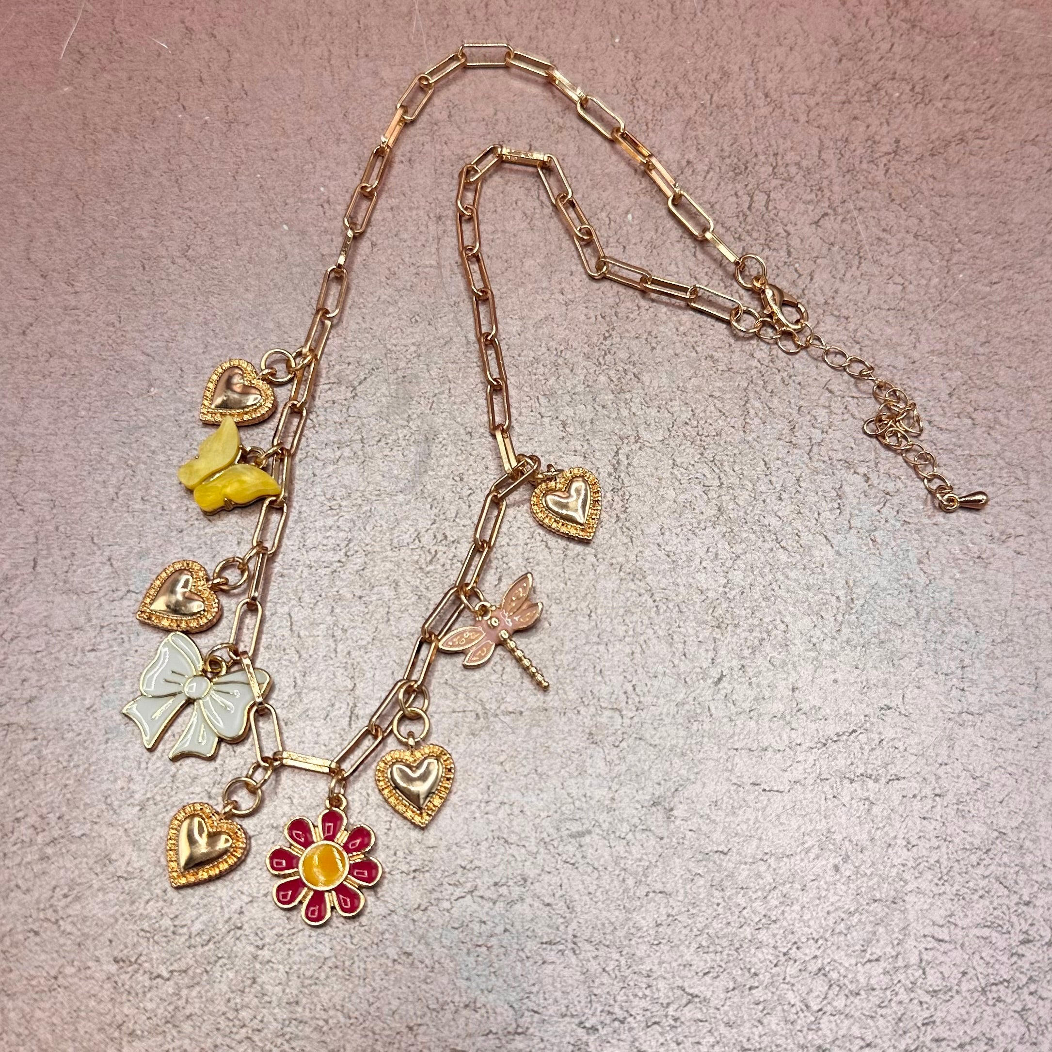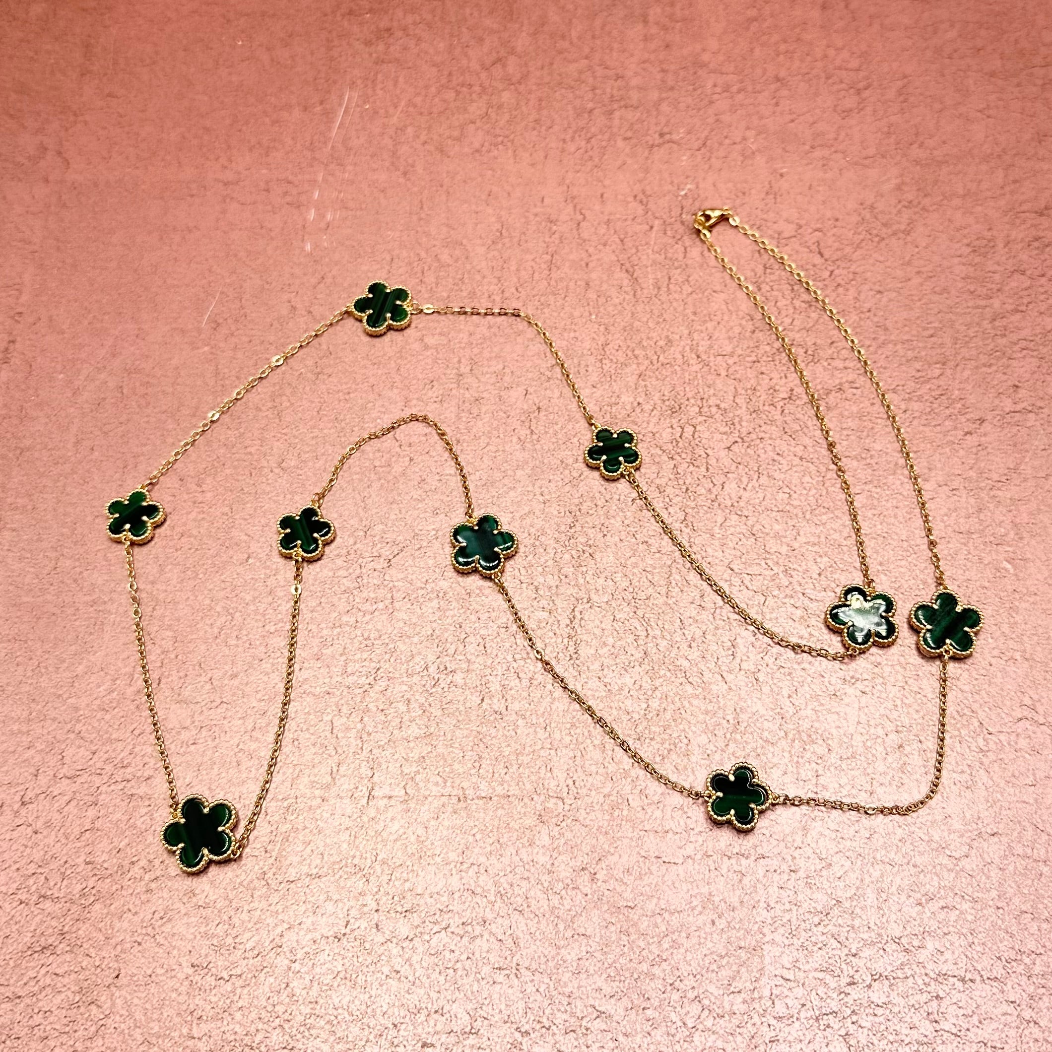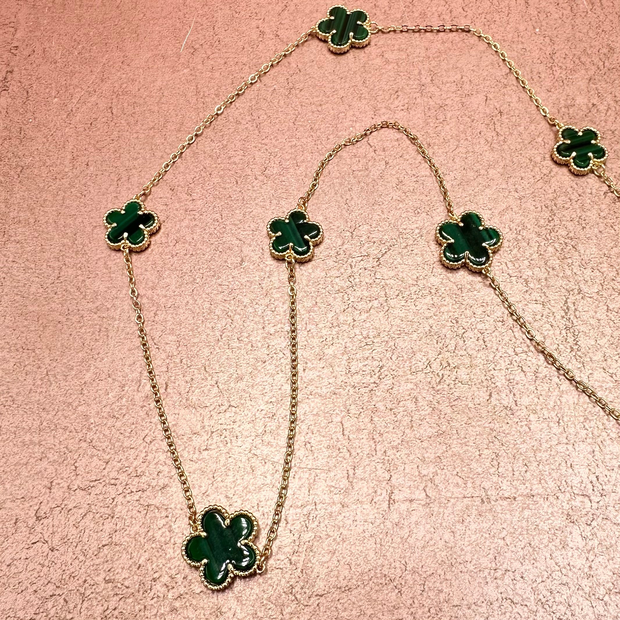 Gold with Faux Malachite Clover Necklace 36" Chain
