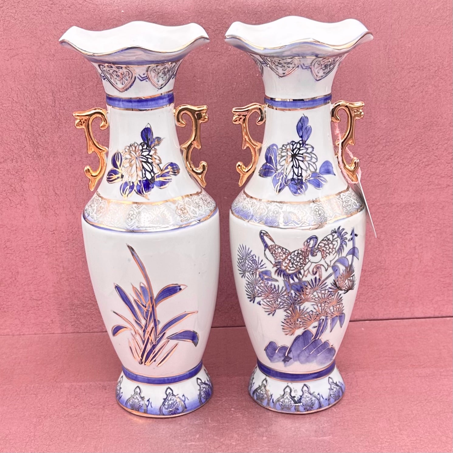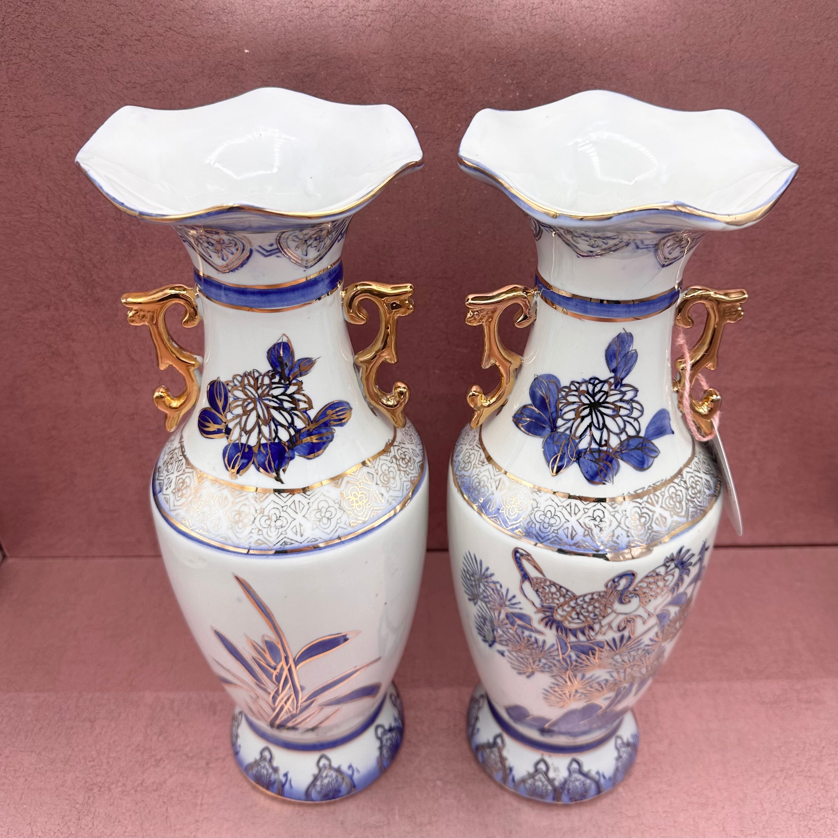 Otagiri Serving Bowl Blue w/ Pink & Purple Flowers