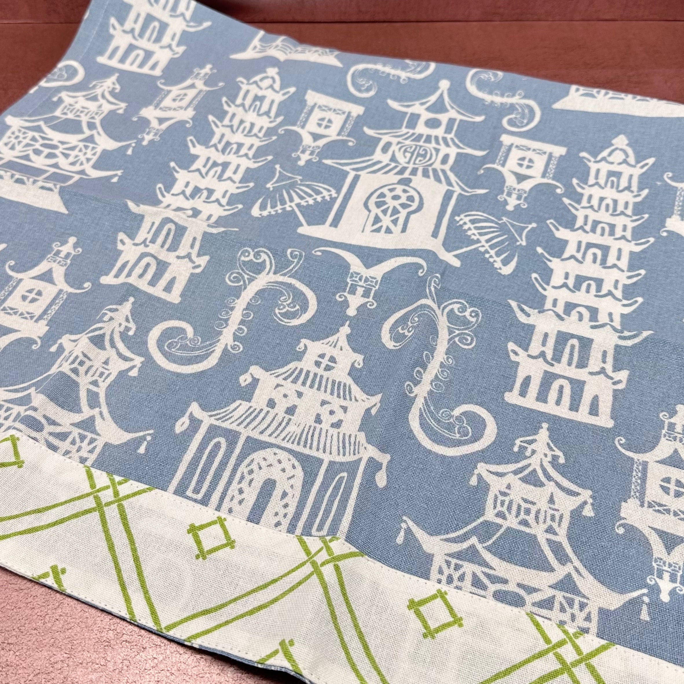 Pagodas Periwinkle with 2 Tassels Kitchen Towel