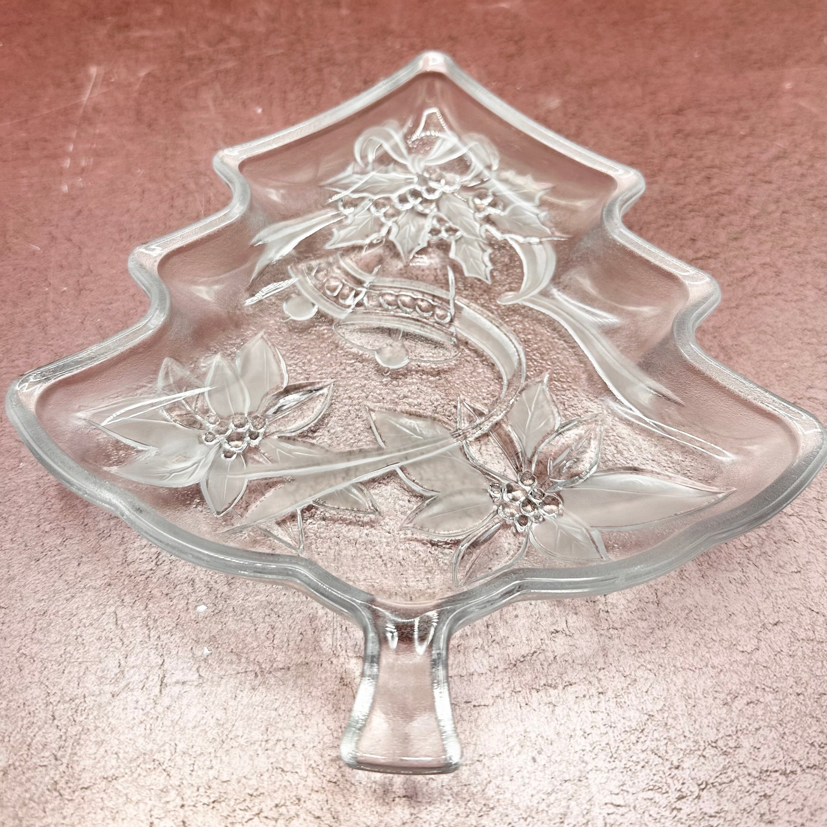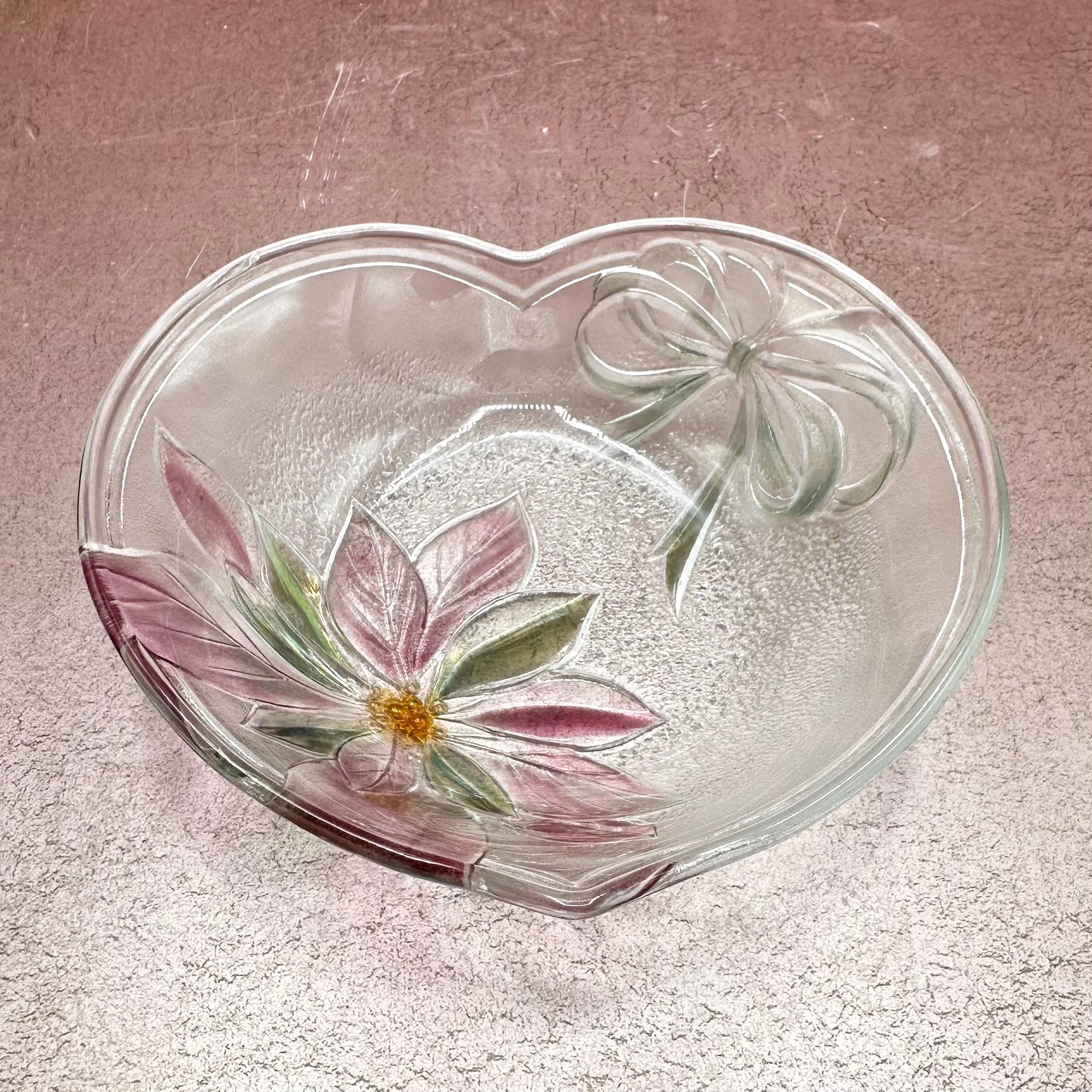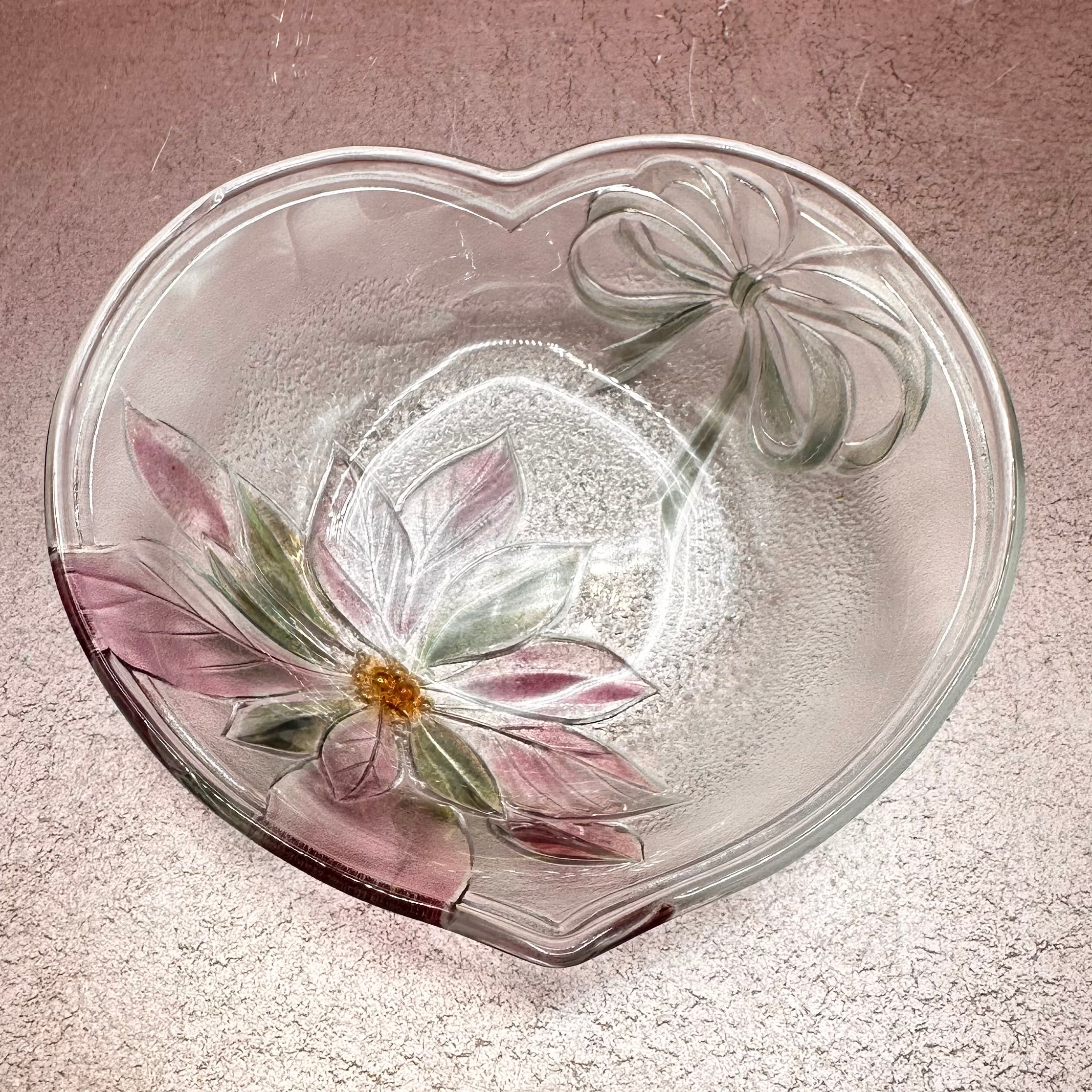 Heart Shaped Poinsettia & Bow Glass Bowl