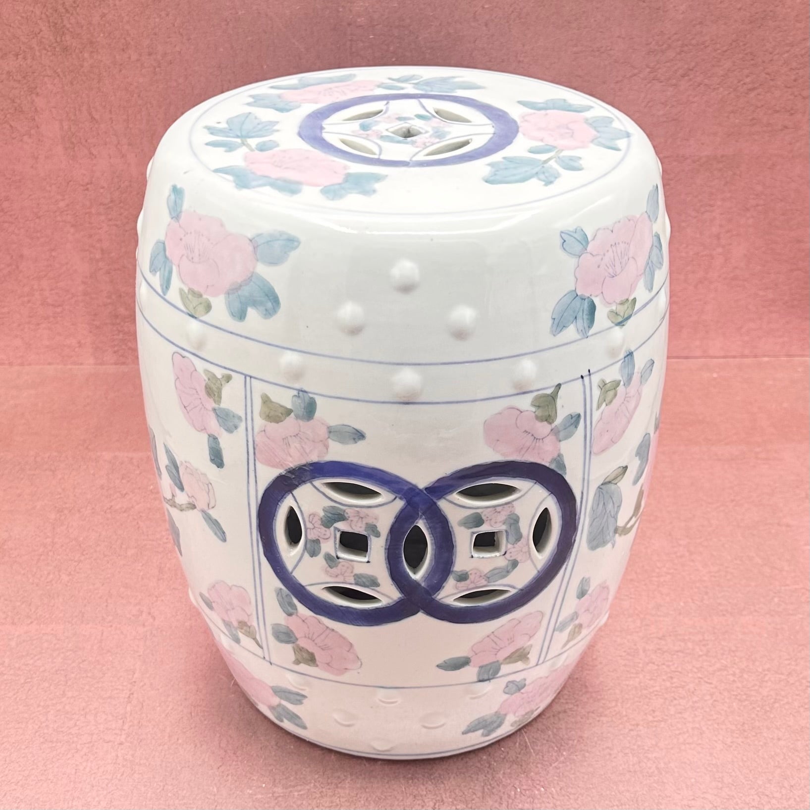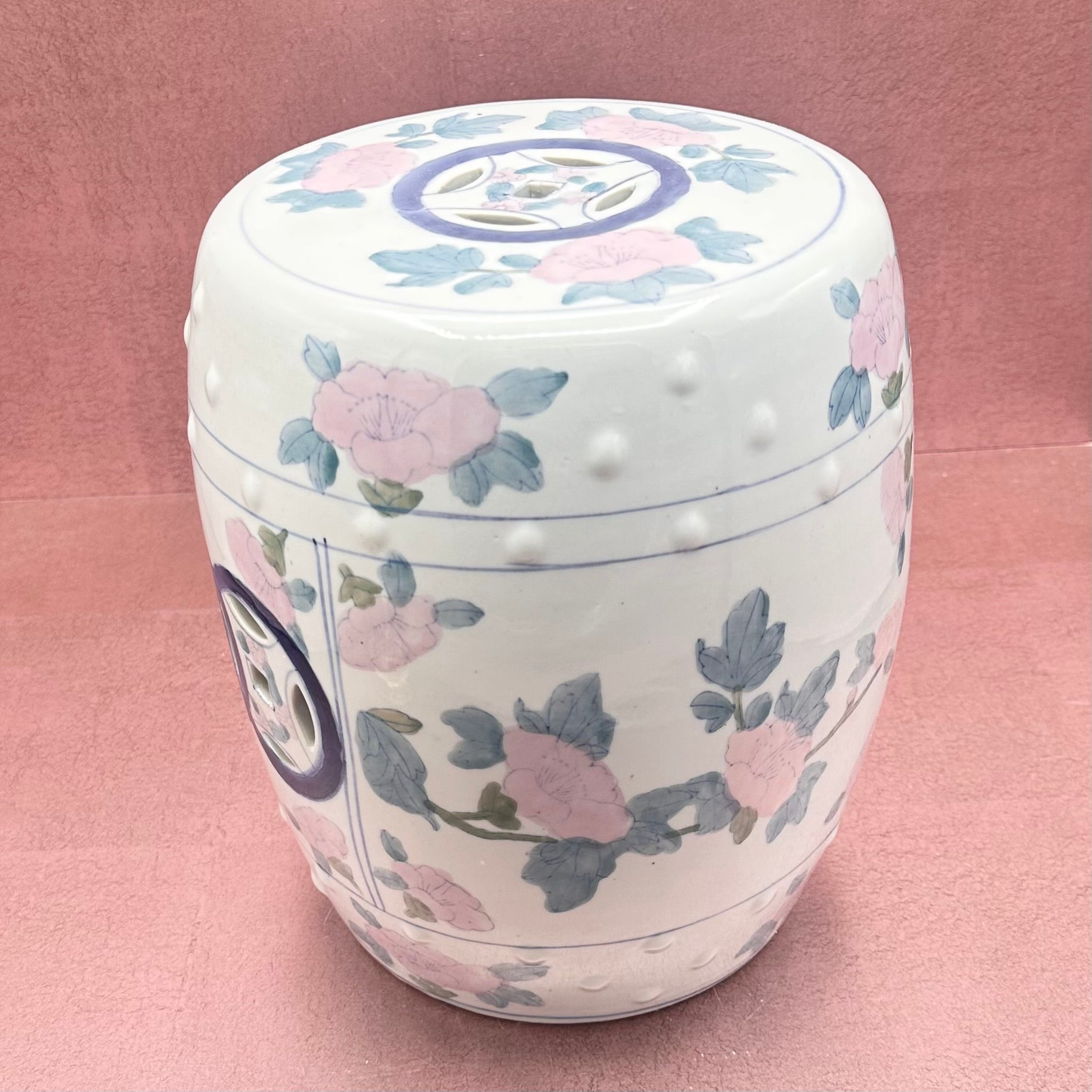 Petite Chinoiserie Pink/Aqua Garden Stool