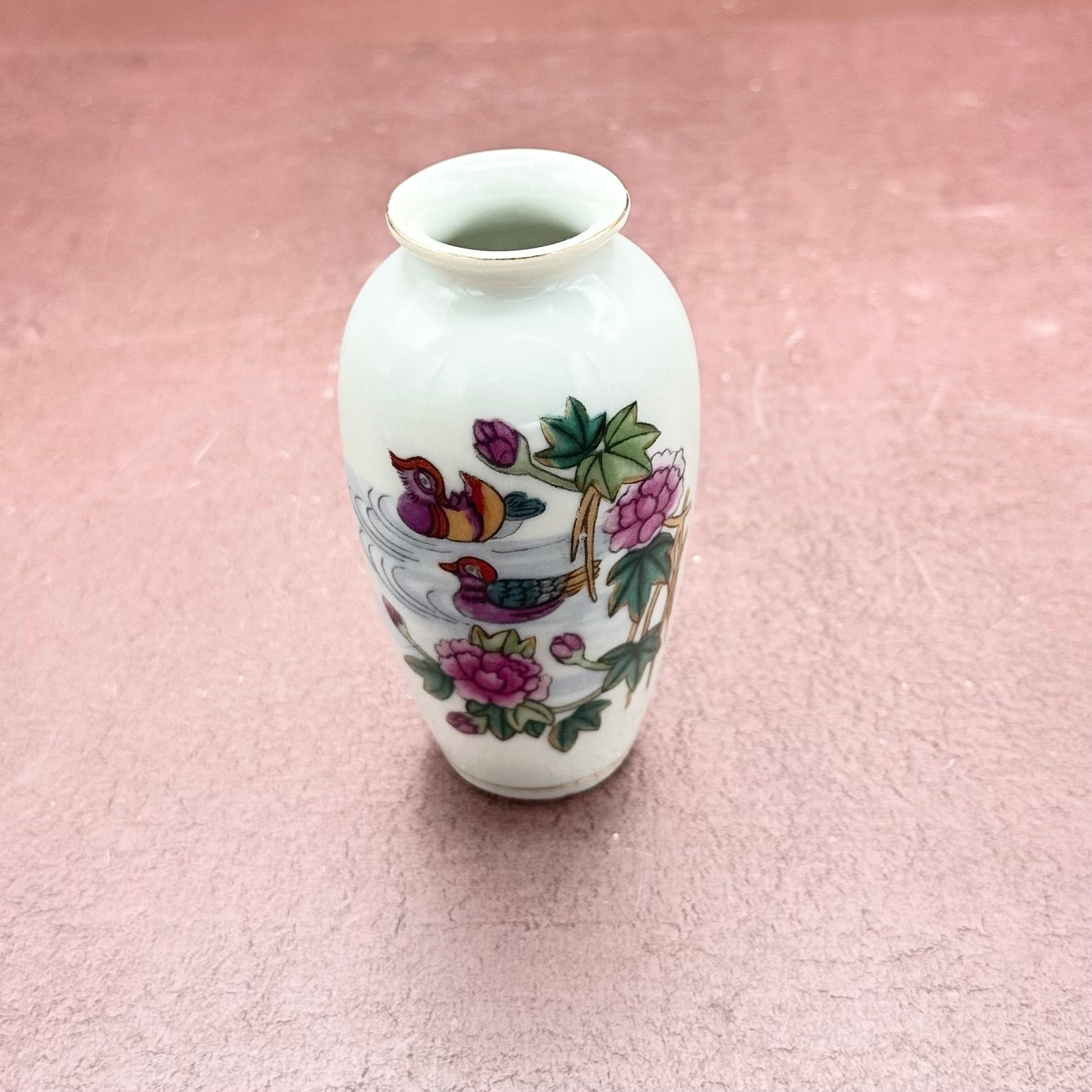 Tiny Vase Mandarin Ducks & Flowers