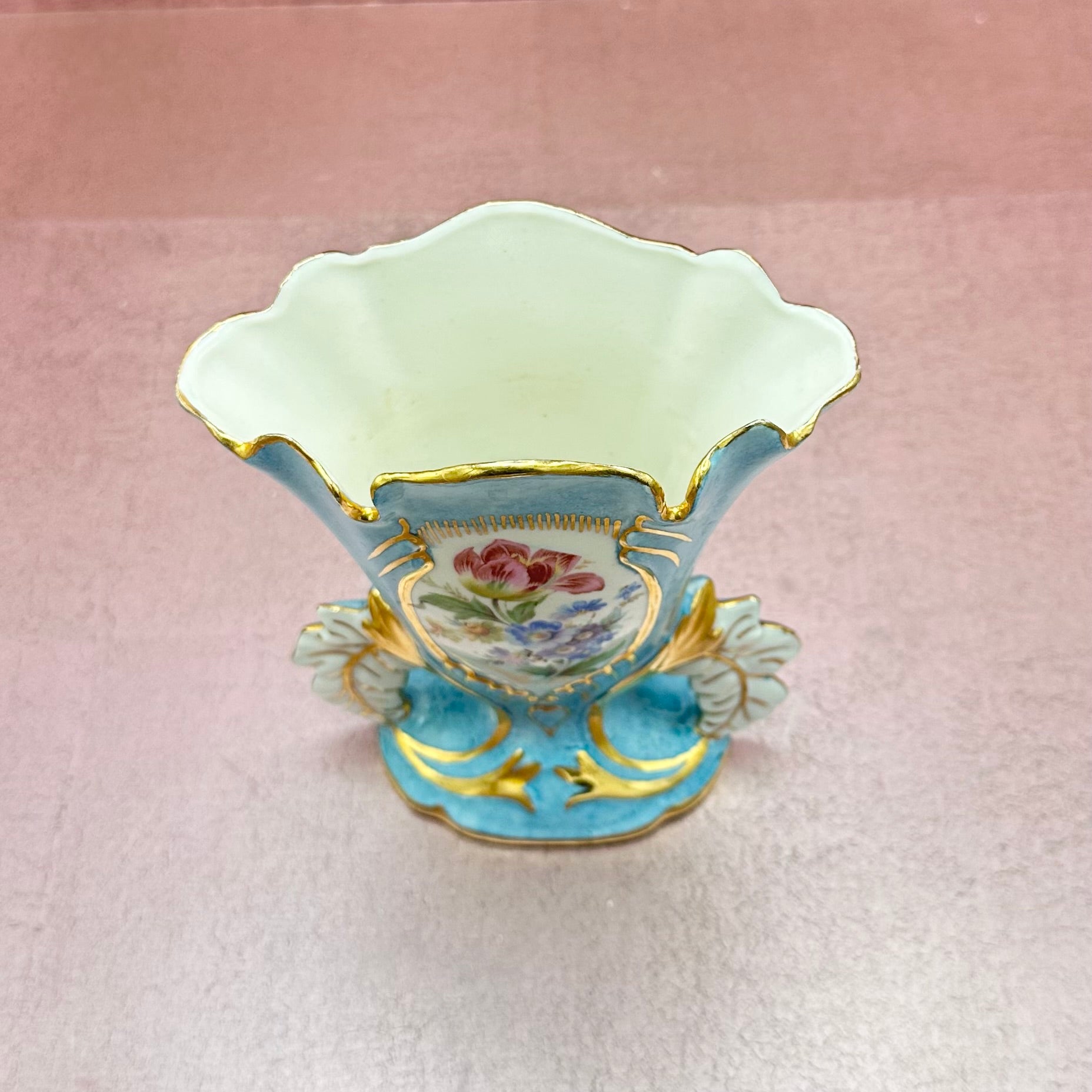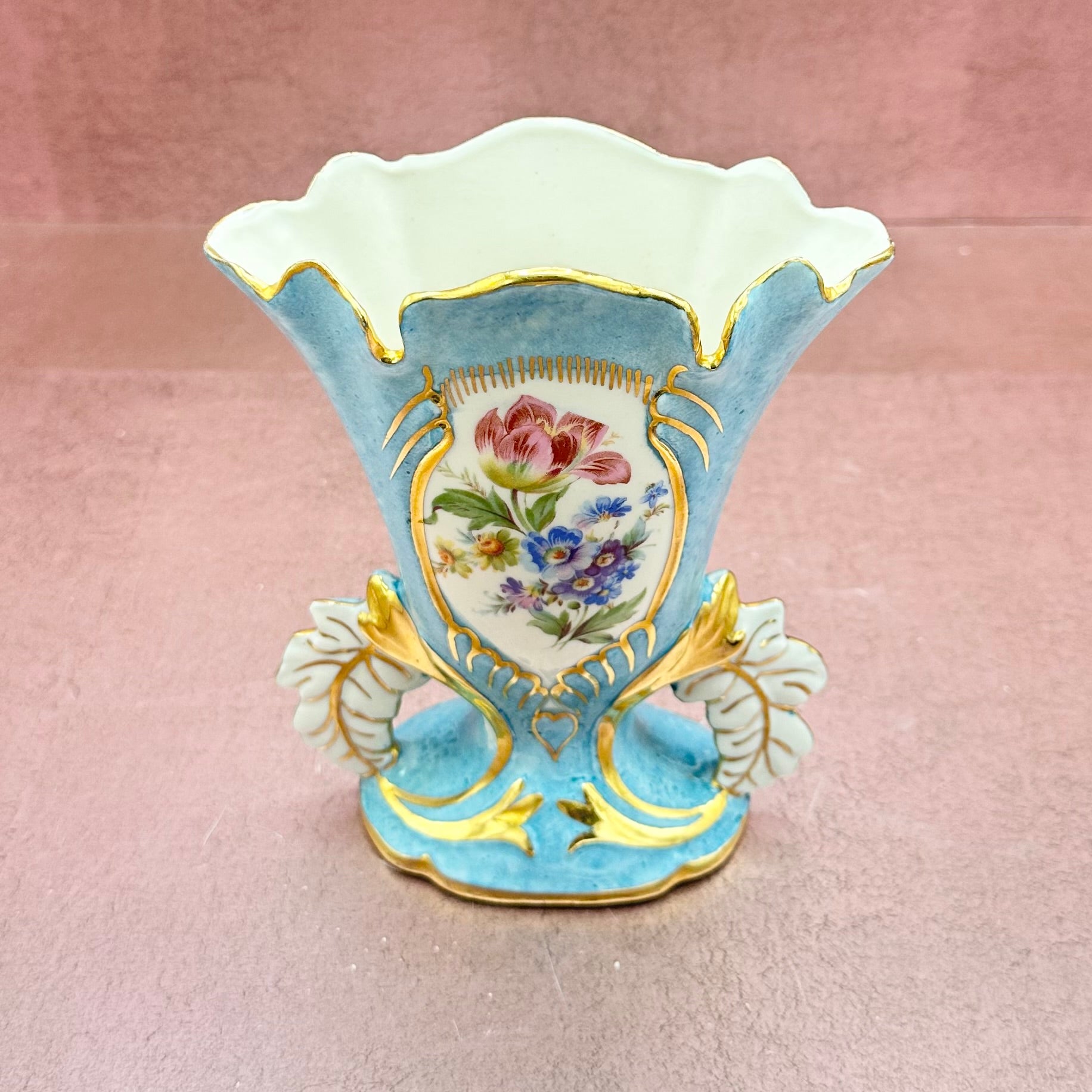 Light Blue Victorian Style Gold Trimmed Vase