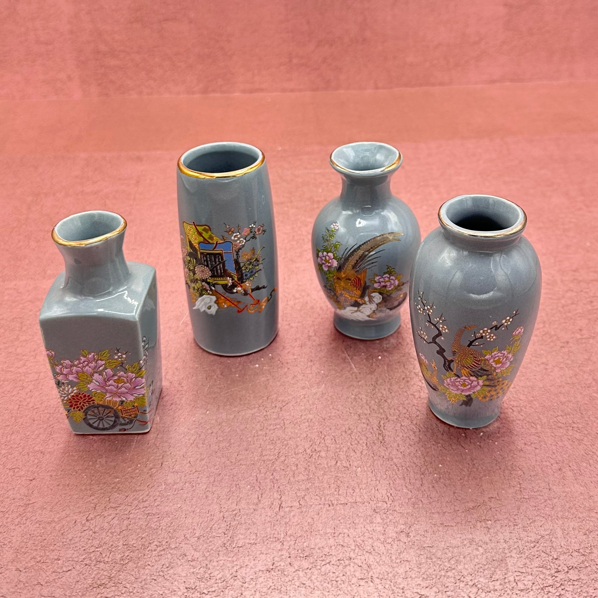 Mini Gray Blue Hand Painted Chinese Vases