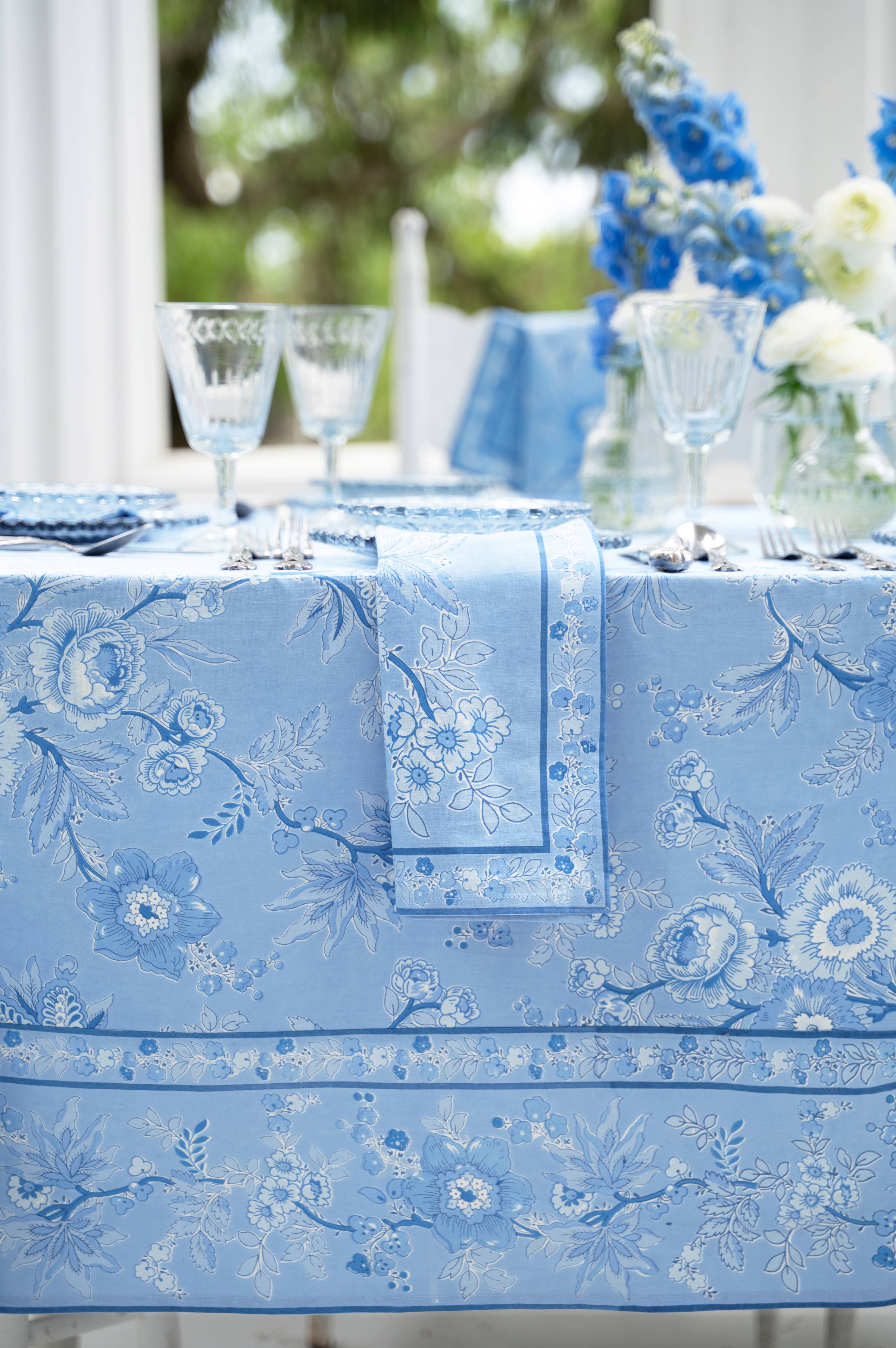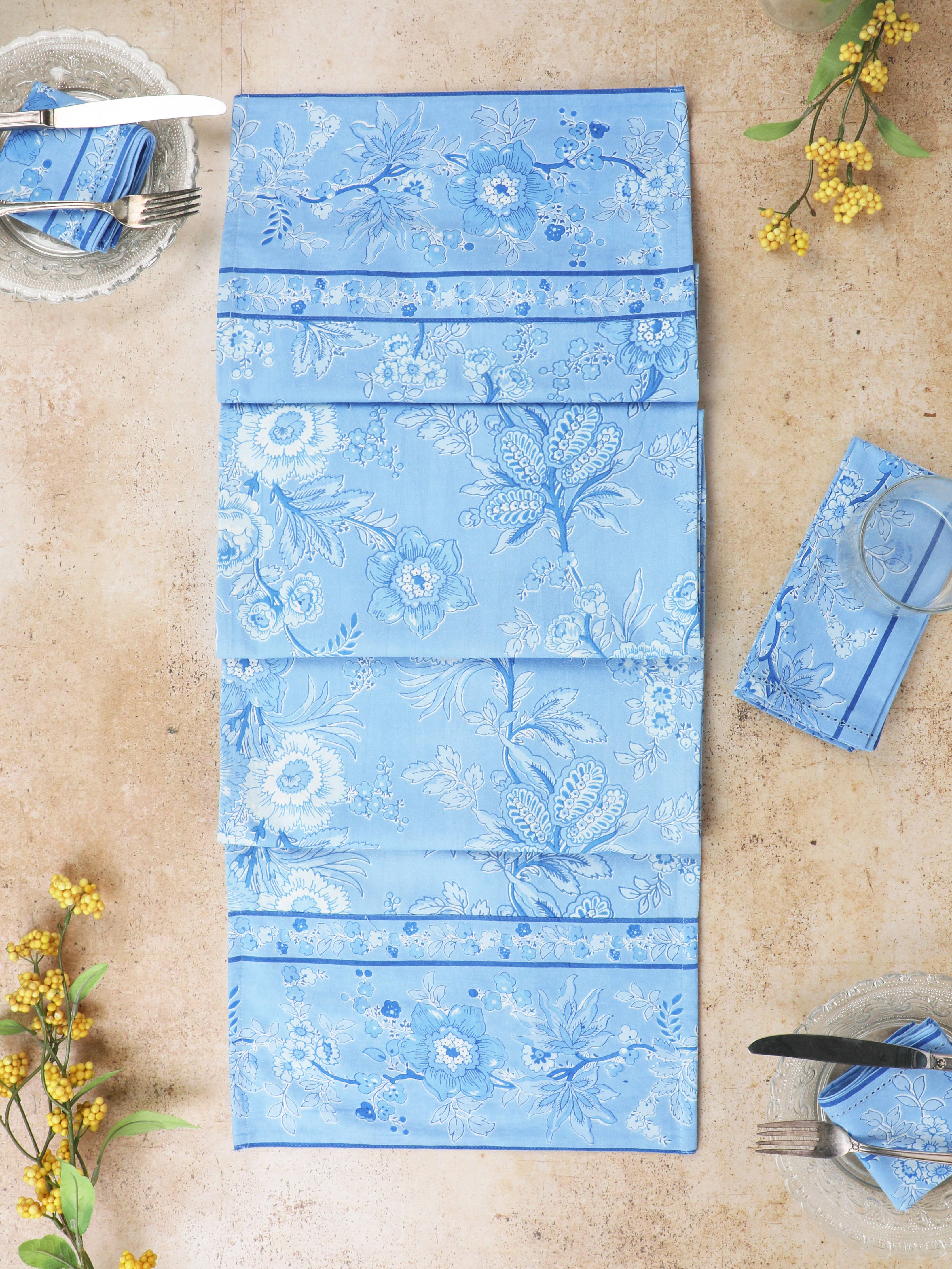 Hydrangeas and Pumpkins Blue Bamboo Trellis Placemat
